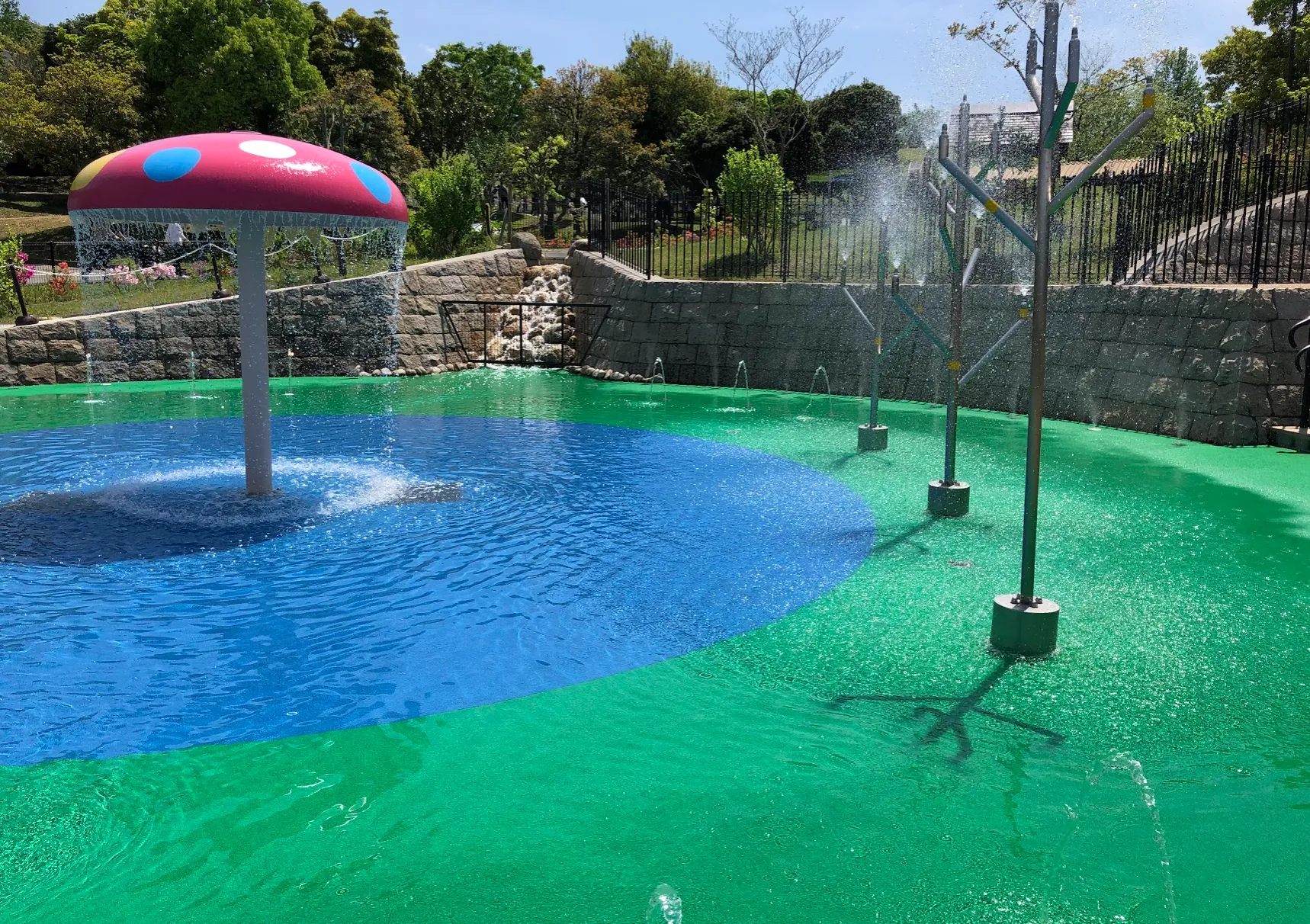 水の勢いが調整されており、霧状に噴射されたりするので近くで見るだけでも幼児は大興奮。