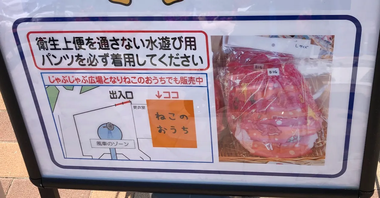 ハーベストの丘のじゃぶじゃぶ広場は追加料金なしで楽しめますが、おむつはずれ前の子供は水遊び用のパンツが必要です。